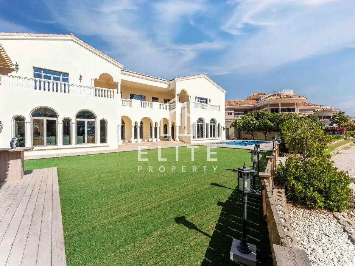 Elite Property Dubai se enorgullece de presentar esta excepcional villa Signature de 6 dormitorios, con una ubicación ideal en una de las ramas A de Palm Jumeirah.