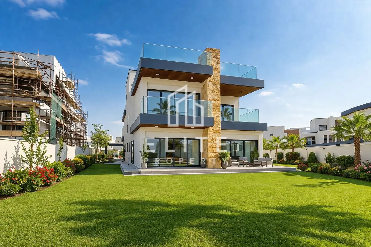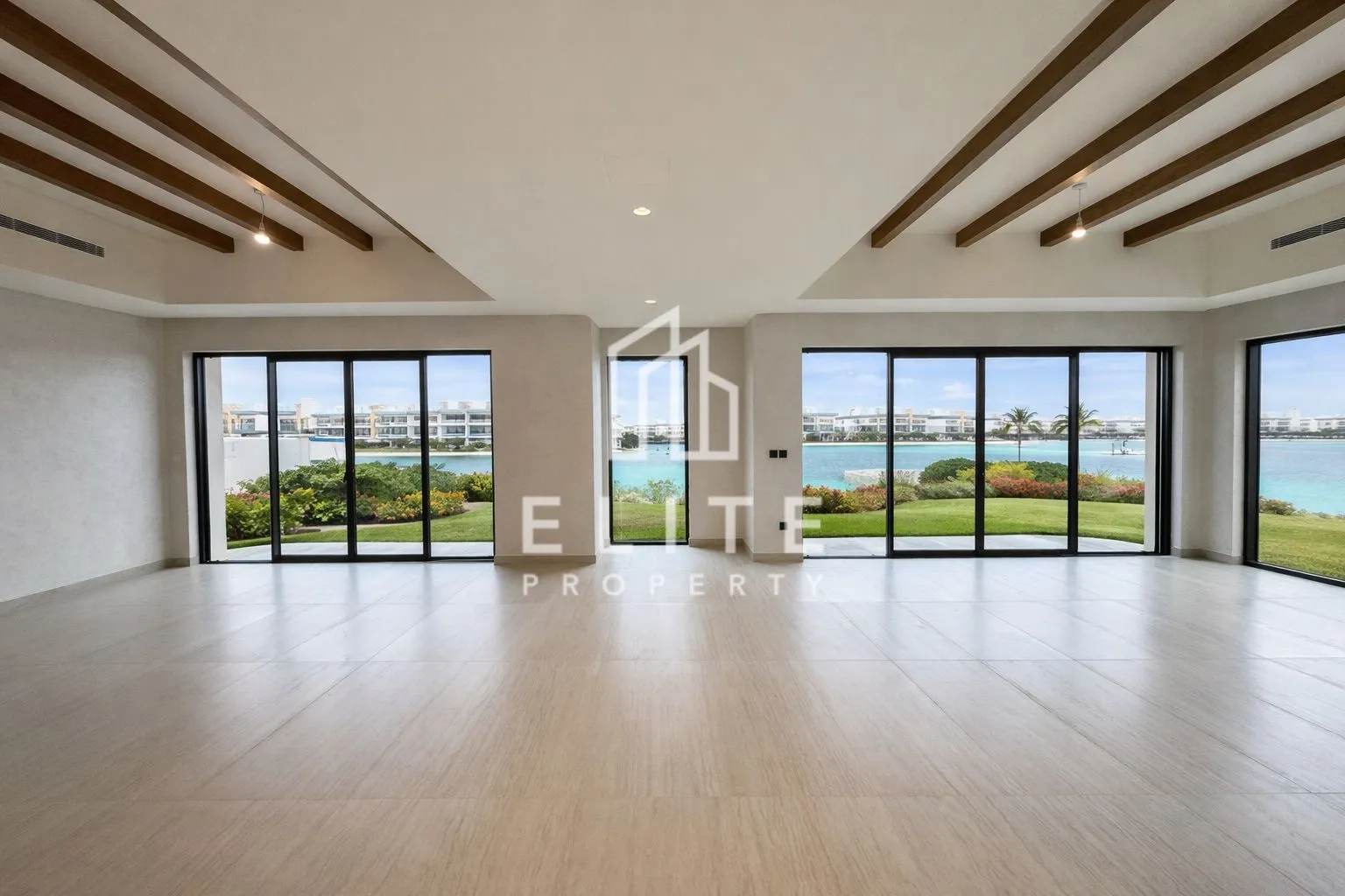 La propiedad tiene una superficie de 465 m² y cuenta con amplios espacios, una enorme sala de estar con ventanas de suelo a techo y puertas plegables que ofrecen unas vistas impresionantes de las lagunas, una cocina independiente y un dormitorio con baño en la planta baja, además de otros cinco dormitorios en la primera planta, desde donde se accede a una enorme terraza en la azotea con unas vistas preciosas de toda la urbanización.